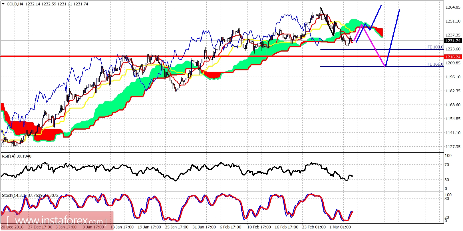Technical analysis of gold for March 6, 2017