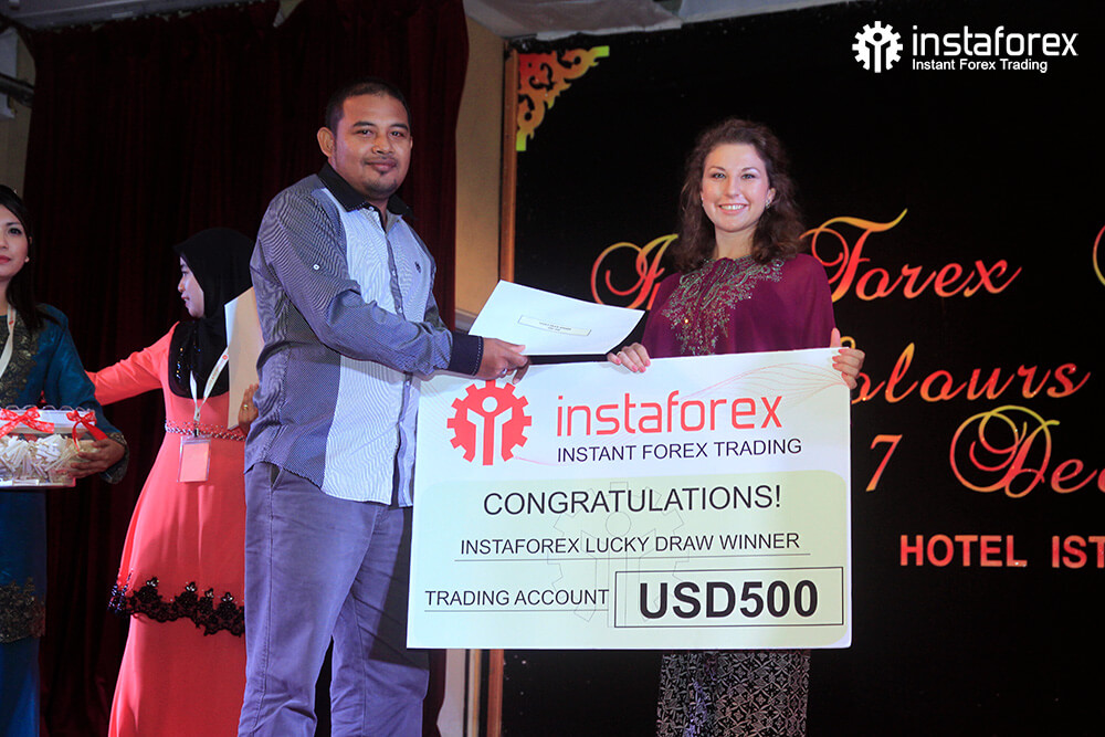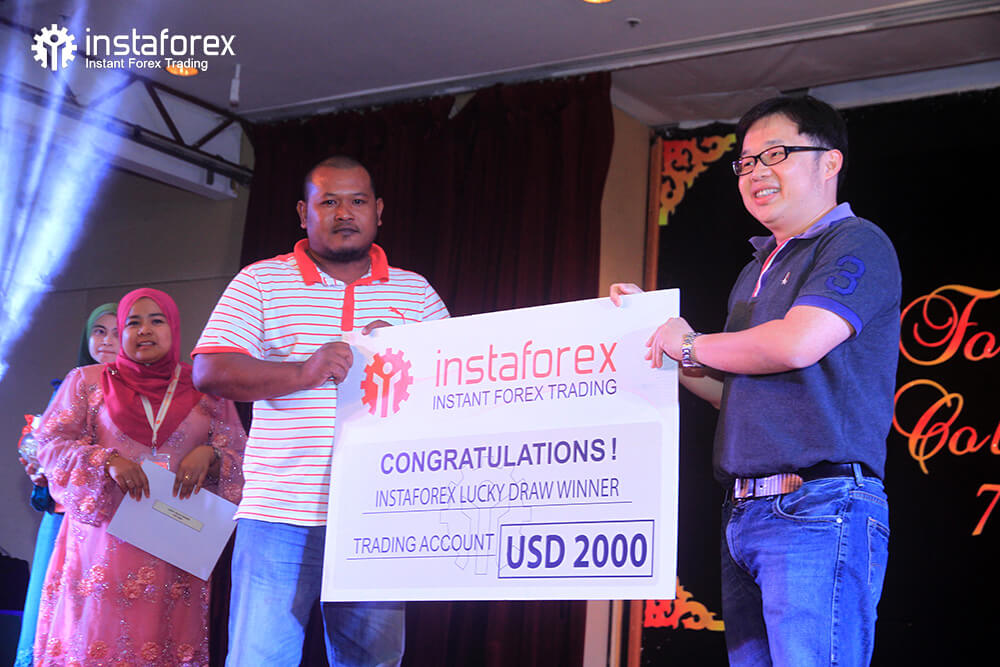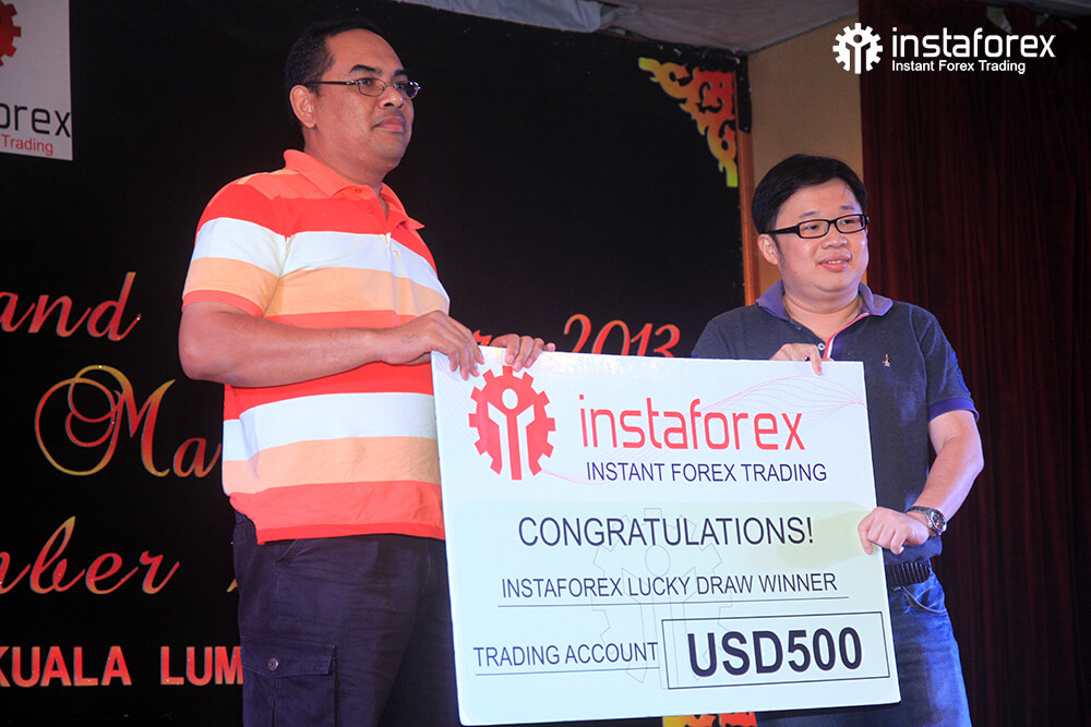 Bagi meraikan kehadiran para tetamu jemputan, pihak InstaForex telah menawarkan pelbagai hadiah menarik di dalam acara cabutan bertuah seperti alat peranti moden iPhone 5, Samsung Galaxy S4, iPad mini, Samsung Galaxy tab 2, dua buah TV plasma, juga akaun perdagangan yang masing-masing bernilai $500, $1,000, $2,000, serta hadiah utama berupa $8,000. Nilai keseluruhan hadiah yang telah diperuntukan/ditawarkan oleh pihak syarikat adalah berjumlah sebanyak 25,000$. Selain itu, kesemua tetamu juga telah diberikan set promo produk rasmi InstaForex.