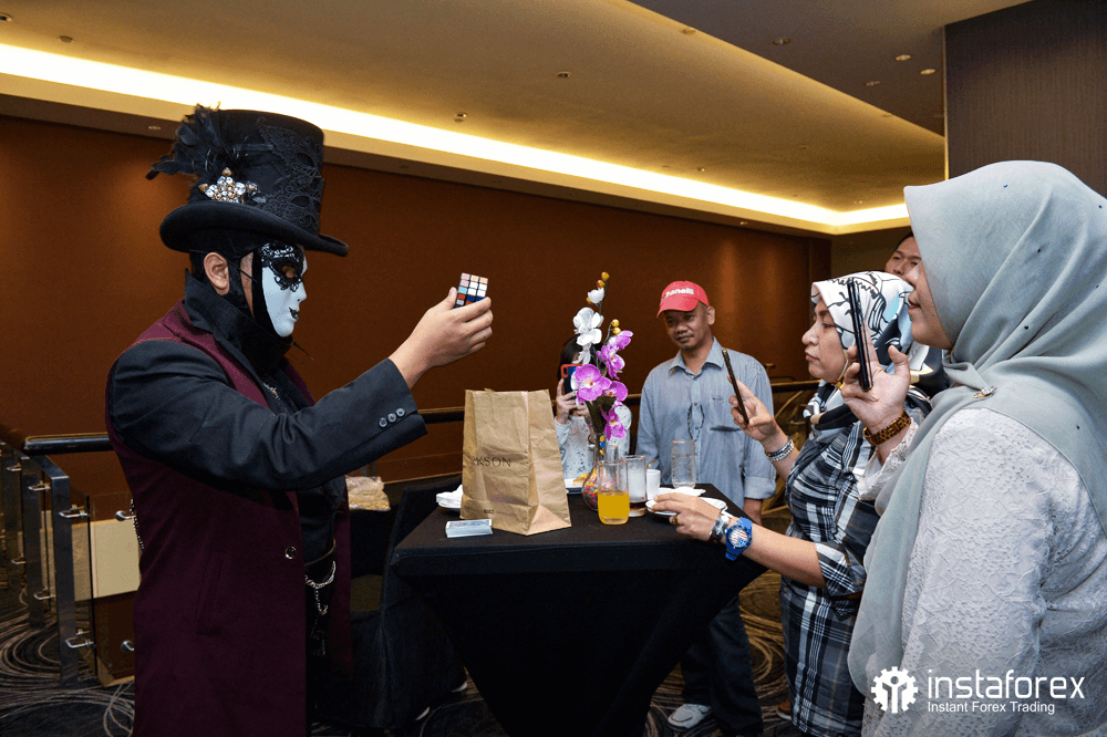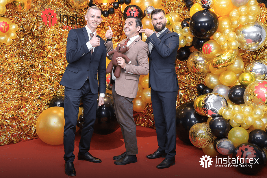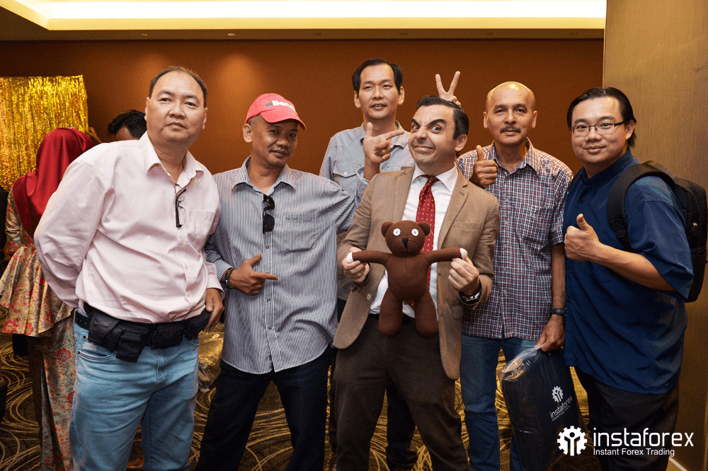 Mr Bean memberikan persembahan yang sangat terbaik untuk para tetamu. Beliau juga menjemput beberapa tetamu termasuk wakil dari HQ InstaForex ke atas pentas. Selain itu, InstaForex menghantar beberapa wakil mereka ke acara tersebut bagi memeriahkan lagi Majlis Makan Malam itu dan kami ingin mengekalkan tradisi ini tahun depan.