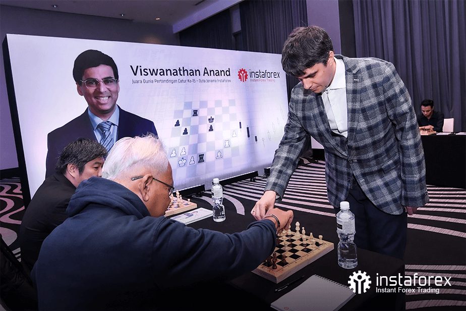 Terdapat satu lagi kejutan untuk para tetamu. Mereka boleh mengambil bahagian dalam kejohanan catur yang dianjurkan oleh InstaForex. Tidak perlu dikatakan lagi, kami memutuskan untuk menyerahkannya kepada Rakan niaga dan duta jenama terkenal kami - Juara Catur Dunia XV Viswanathan Anand. Ia bukan sekadar perlawanan biasa tetapi sesi permainan serentak yang membolehkan 28 tetamu acara untuk bermain menentang InstaForex. Pengarah Pembangunan Perniagaan Pavel Shkapenko yang juga Master Chess Antarabangsa. Setiap peserta yang menyertai kejohanan catur ini akan menerima set catur eksklusif dan pemenangnya (ya, ada pemenang!), Menerima hadiah istimewa berupa akaun dagangan dengan AS$ 5,000 deposit.
