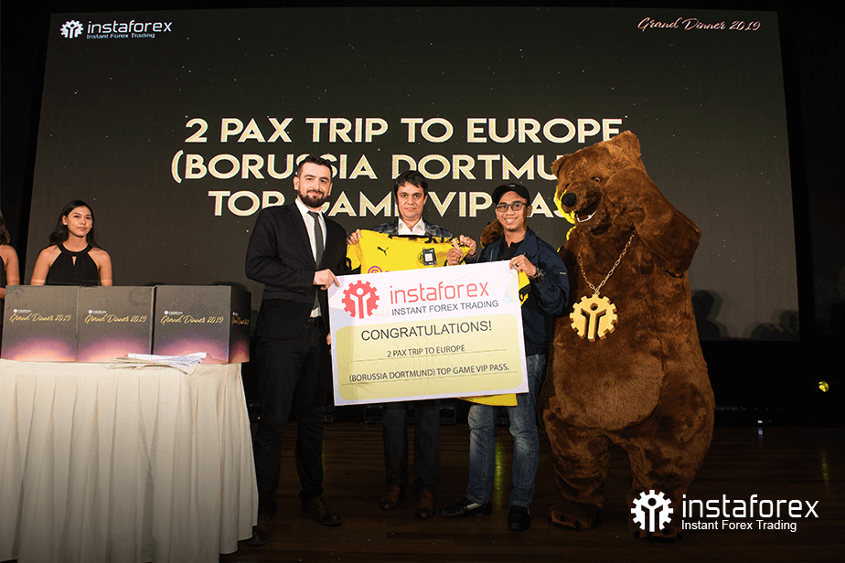 Walau bagaimanapun, kami berusaha sebaik mungkin untuk menyokong suasana perayaan sepanjang malam, jadi kami mengadakan banyak cabutan bertuah dengan hadiah-hadiah menarik. Pemenang bertuah menerima akaun dagangan dengan deposit sebanyak AS $ 28,000 serta peranti moden seperti Huawei Nova 5T, Vivo 17 pro, Samsung S10, Iphone 11 Pro, Apple Watch siri 5, Ipad 2019, Samsung TV, dan juga Macbook air 2019. Selain itu, hadiah utama bagi cabutan bertuah merupakan 2 tiket percutian ke Eropah termasuk menonton perlawanan bola sepak TOP Borussia Dortmund yang ditaja oleh InstaForex.