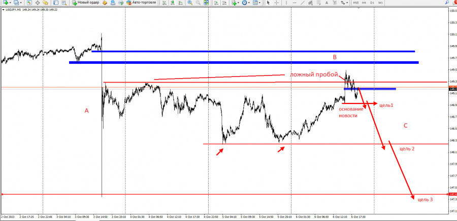 Итак, 6 октября мы давали торговую идею на понижение курса USD/JPY по следующей схеме: